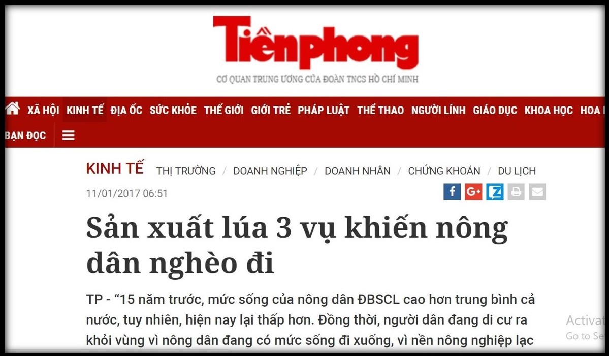 Trong chi phí xây dựng 57.000 km đê bao, Nhà nước góp 7, nhân dân góp 3. Sau đó nhiều triệu nông dân miệt mài bán lưng cho trời, bán mặt cho đất cấy lúa 3 vụ quanh năm. Cả hai cứ nghĩ là mình thắng, nhưng thực chất đều bị thua lỗ. Vì tháng 5/2015, nữ chuyên gia quốc tế Tong Yen Dan đã công bố công trình nghiên cứu của mình “Phân tích những Chi phí và Lợi ích của hệ thống đê bao tôn cao ở Đồng bằng sông Cửu Long” để cấy lúa 3 vụ quanh năm. Nghiên cứu này được Chương trình Môi trường và Kinh tế Đông Nam Á tài trợ (The Economy and Environment Program for Southeast Asia, Văn phòng đặt tại Philippines). Tác giả đã được sự trợ giúp của Trường Đại học Cần Thơ và chọn An Giang là tỉnh điển hình của ĐBSCL để nghiên cứu trong 1 năm. Kết quả được lượng hóa rất cụ thể, qui hết ra tiền: Nhà nước thua lỗ 47.765 nghìn đồng/ha. Nông dân, thua lỗ 3.381 nghìn đồng/ha.