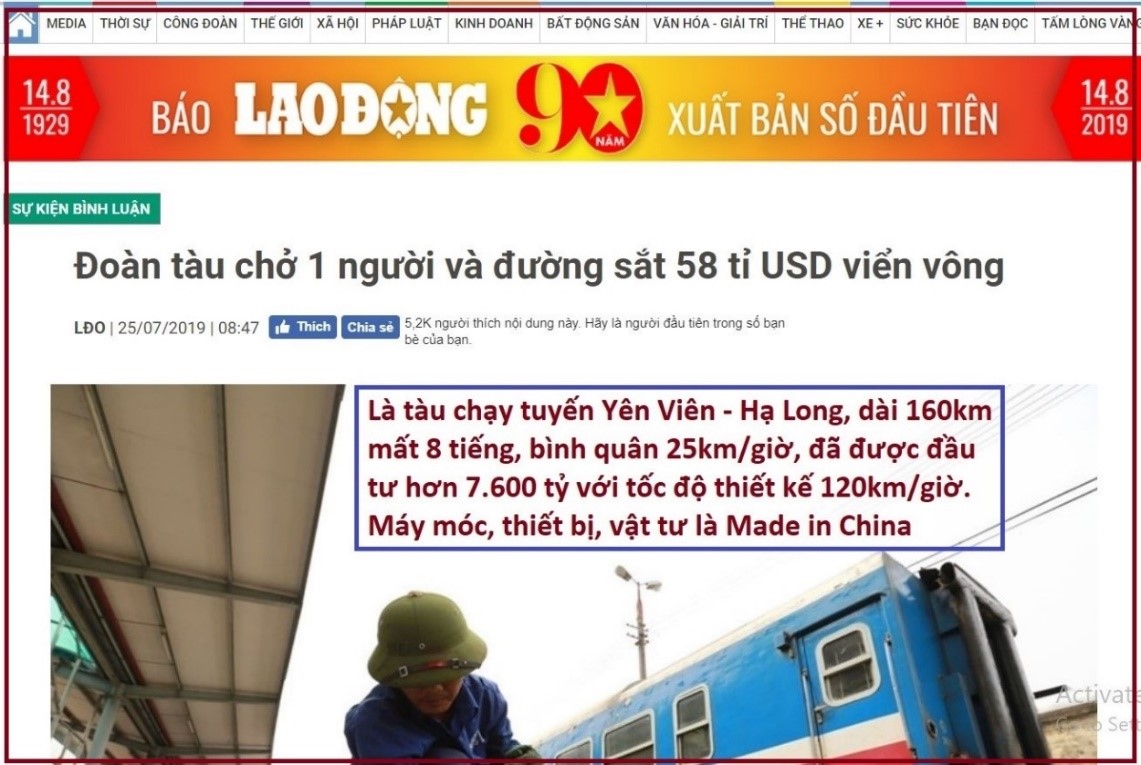 (Về dự án đường sắt cao tốc Bắc – Nam là rất yếu kém về chiến lược đầu tư và rất có hại cho đất nước)