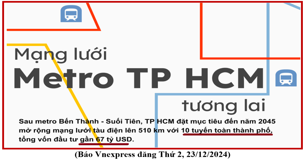 Kết luận: Thực hiện các quy hoạch nói trên của ngành giao thông cho giai đoạn 2026 - 2030 sẽ cần 1.633.000 tỷ đồng. Cộng thêm với khoảng 84,9 tỷ USD (40 tỷ USD cho vài tuyến Metro của Hà Nội và thành phố Hồ Chí Minh, 50% nhu cầu giải ngân cho ĐSCT Bắc - Nam sẽ là 36,5 tỷ USD, và 8,4 tỷ USD cho dự án đường sắt Lào Cai - Hà Nội - Hải Phòng (Nghị quyết số 187/2025 của Quốc hội).