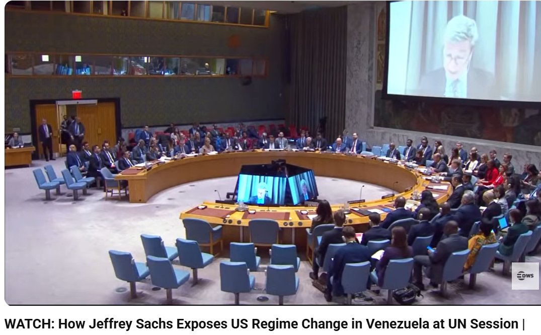 Ngày 5/1 Hội đồng Bảo an LHQ đã họp khẩn về vụ việc quân đội Mỹ bắt cóc vợ chồng Tổng thống Maduro đưa về New York tống giam chờ xét xử. Tại cuộc họp khẩn này, giáo sư Mỹ Jeffrey Sachs đã có PHÁT BIỂU CHẤN ĐỘNG TOÀN CẦU, LỘT TRẦN MẶT NẠ ĐỘC ÁC CỦA NHIỀU ĐỜI TỔNG THỐNG MỸ. Giáo sư Jeffrey Sachs (sinh ngày 5/11/1954) thuộc trường Đại học Columbia, là nhà khoa học kinh tế và là Giám đốc Trung tâm Phát triển bền vững thuộc Trường Colombia. Từ năm 2001 – 2018 ông là cố vấn đặc biệt của Tổng thư ký LHQ. Hiện ông đang là Chủ tịch Mạng lưới các giải pháp Phát triển bền vững của LHQ.